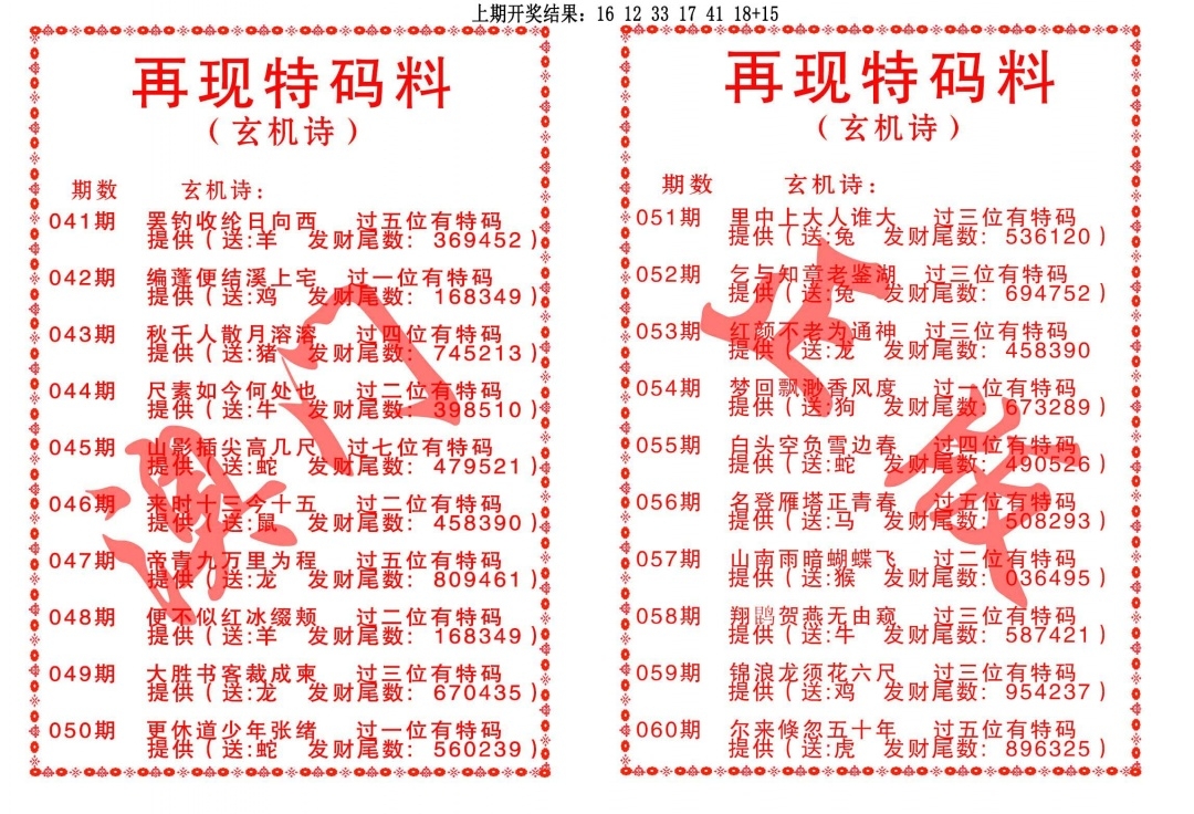 再现特码料